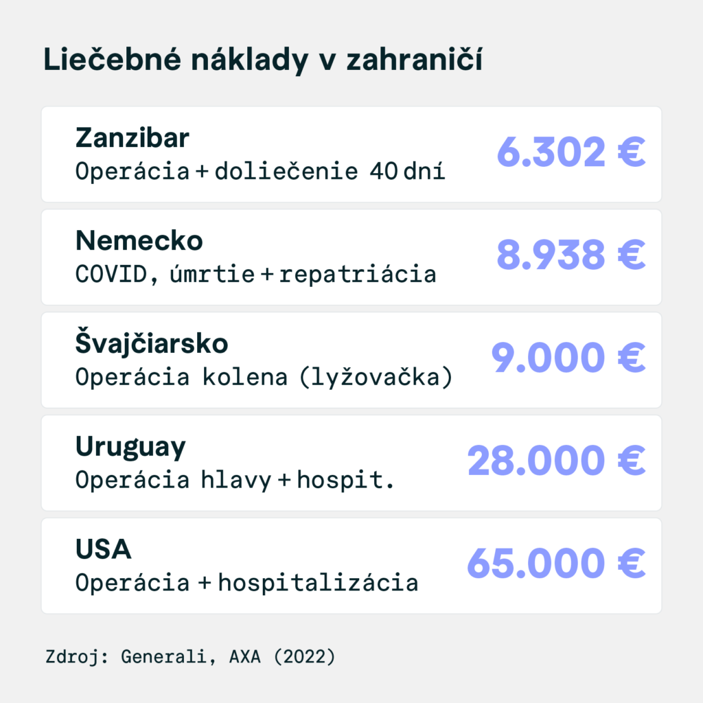 Cestovné poistenie je ochrana, ktorá za vás v základnom poistení pokryje náklady na zdravotnú starostlivosť v zahraničí. V prípade úrazu alebo ochorenia poisťovňa preplatí výdavky na lekársku starostlivosť, lieky, hospitalizáciu, dokonca aj transport späť na Slovensko. Poisťovne ponúkajú rôzne balíčky cestovného poistenia. K základnému poisteniu máte možnosť si pripoistiť aj ďalšie riziká, ako je zodpovednosť za škodu tretím osobám, úrazové poistenie, poistenie batožiny, pripoistenie rizikových či extrémnych športových aktivít, storno cesty atď. Chcete cestovať bez starostí? Kontaktujte nás. Pomôžeme vám vyskladať optimálne cestovné poistenie, presne podľa vašich potrieb.