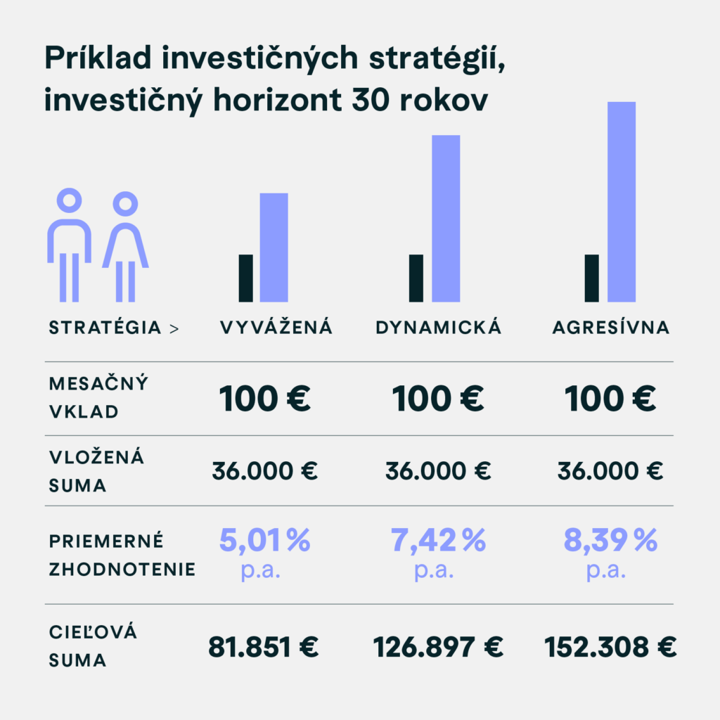 Z dôvodu starnúcej populácie bude priemerný dôchodok dnešnej pracujúcej generácie približne o 20 – 30 % nižší ako dnes. Ako doplnenie štátneho dôchodku je potreba sporiť na dôchodok aj individuálne, napríklad cez program pravidelného investovania. Ak som zarábal ako živnostník mesačne 1000 €, platil minimálne odvody a chcel by som si zachovať aj na dôchodku rovnaký životný štandard, musím mesačne sporiť 54 €.